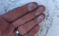 外壁に手で触れると白い粉がついてくるのは劣化のサイン。塗り替え時期です。