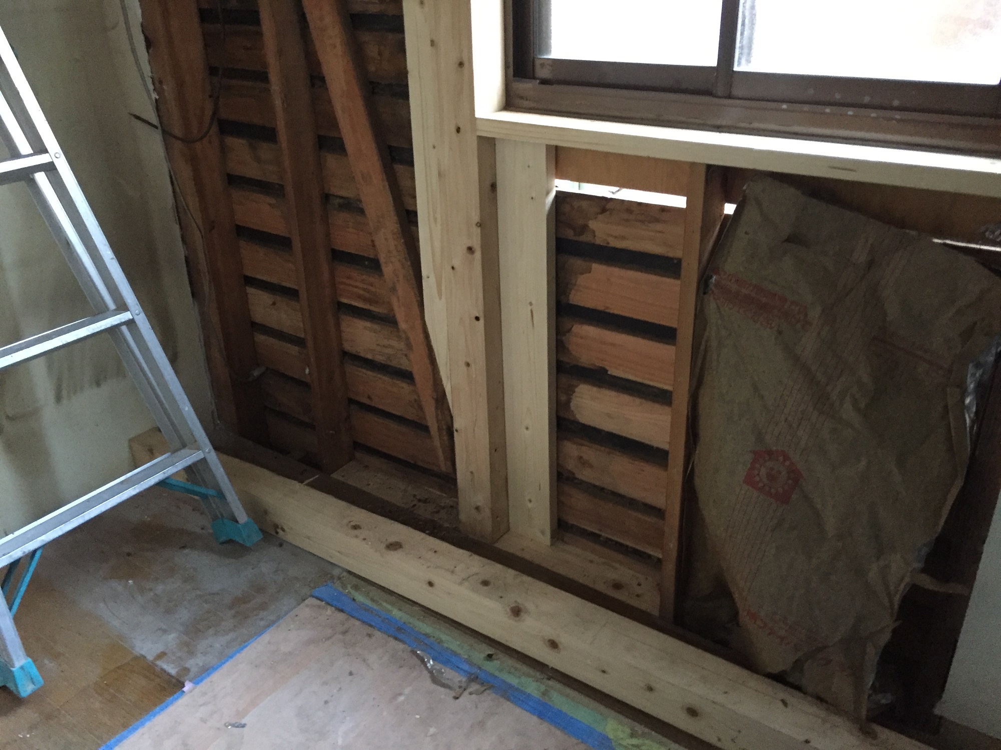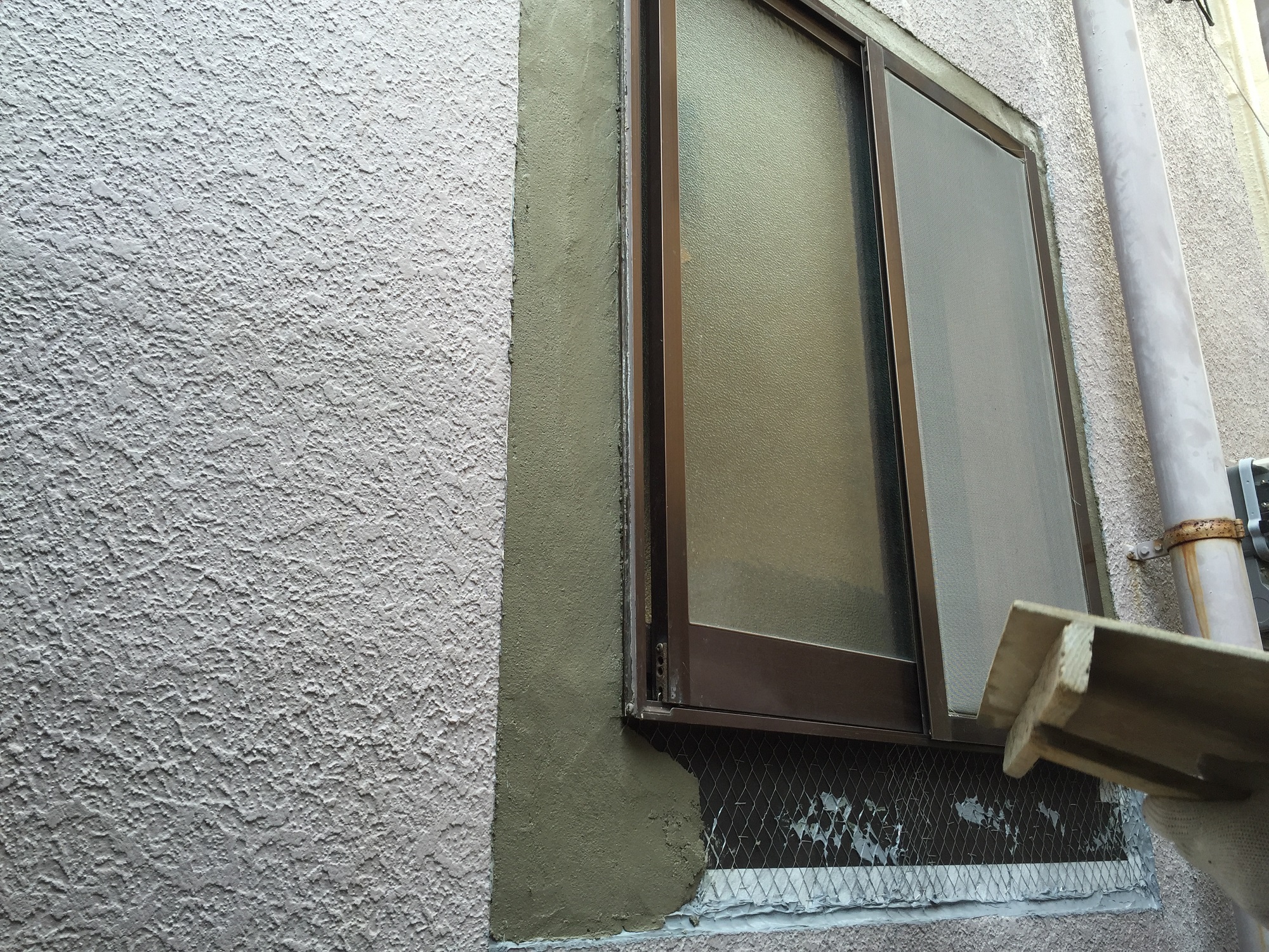 また、柱・枠の交換に伴い、外壁も補修が必要になりますので防水処理をしっかりとしモルタル補修をいたします。