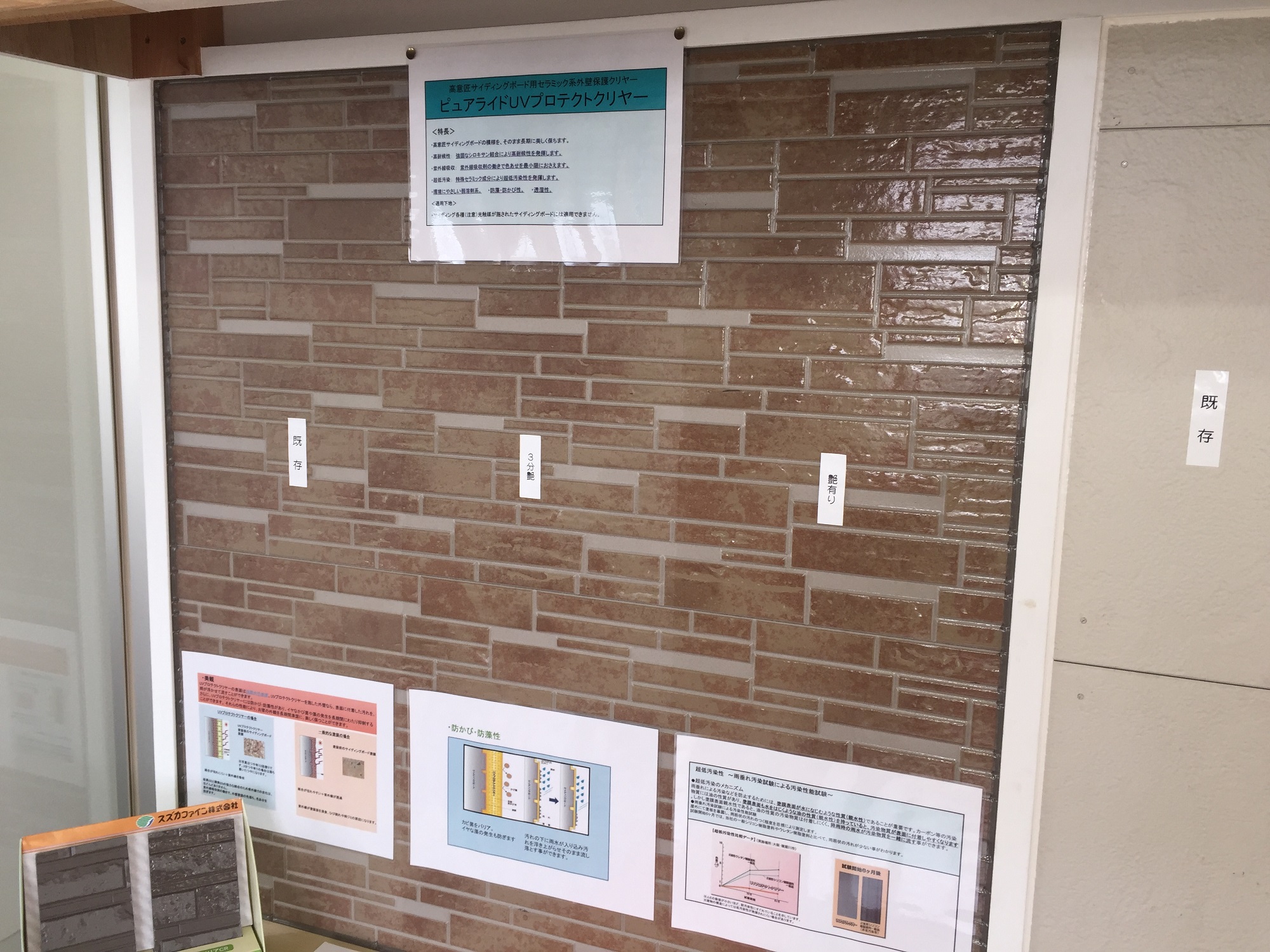 どちらも仕上りのイメージを確認できるようにショールには実際のサイディングボードに塗った物を展示していますので、ぜひ仕上りを確認しに来て下さい。