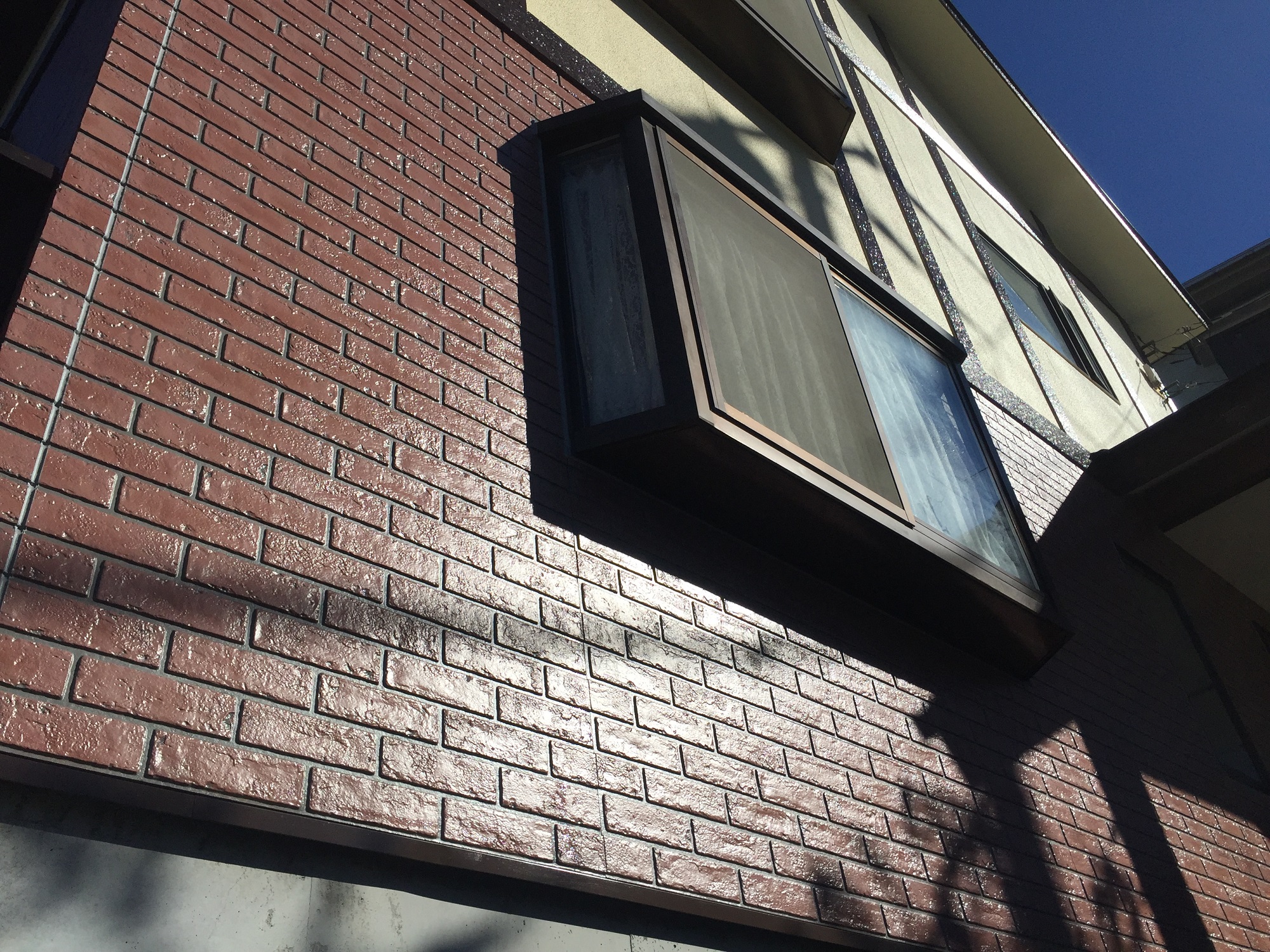このシーリングの打替えにも注意が必要で、通常の塗装工事の場合は最初にシーリングの打替えを行うのが一般的ですが、このクリヤー塗装の場合は、シーリングと塗膜が層間剥離を起こし、そのヵ所だけ浮いたり、剥がれたりする可能性があるのでシーリングを最後に打替え工事完了となります。