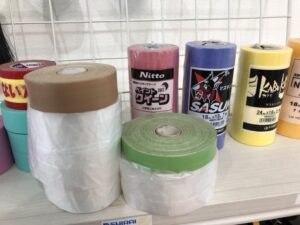 窓等は下の写真の様なビニールとテープが一体となった、マスカーという物で覆います。