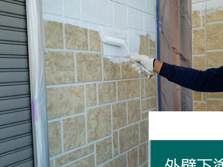 下塗りにはカチオンシーラーを使用します。下塗りは、上塗りの耐久年数を担保するために、大切な工程です。