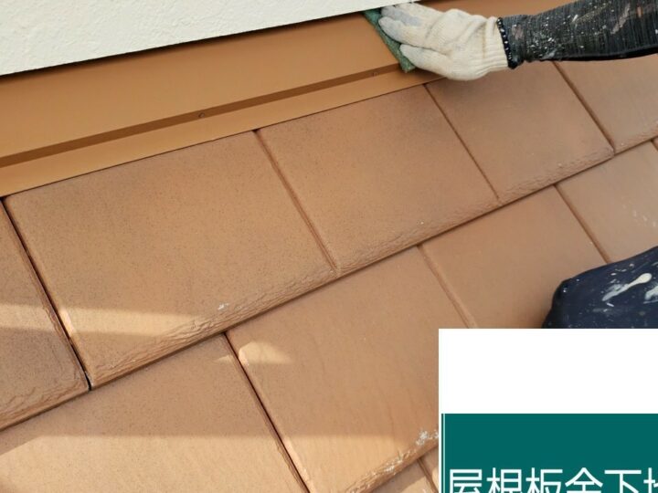 屋根は厚型スレートです。瓦状に整形されていますが塗装が必要です。外壁同様シーラーで下塗りします。