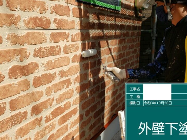 下塗りにはカチオンシーラーを使用します。あとの中塗り、上塗りの密着性を担保するための大切な工程です。