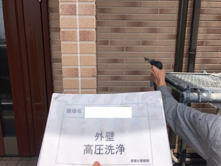 外壁に付着した汚れなどを除去するために高圧洗浄を行いました。