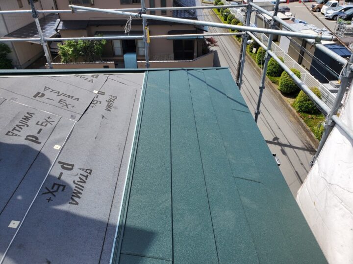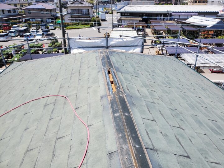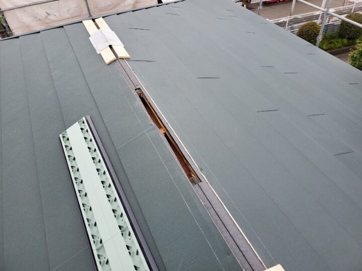 屋根材をすべて設置した後、最後に棟板金を設置いたしました。