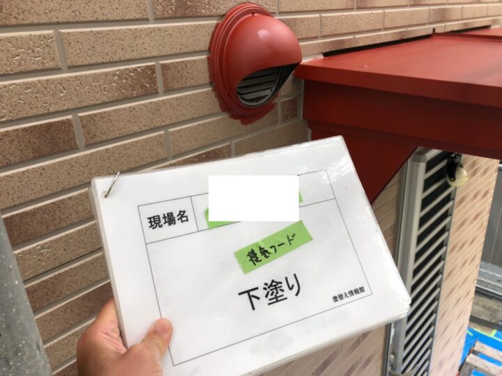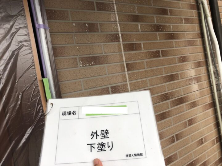下処理後、あとの中塗り、上塗りの密着性を担保するために1階外壁はマイルドシーラーⅡで下塗りを行いました。
