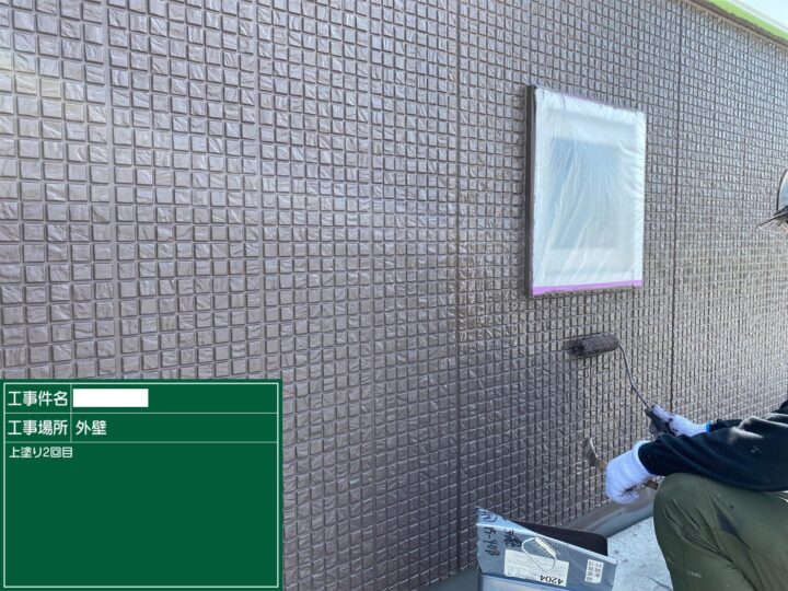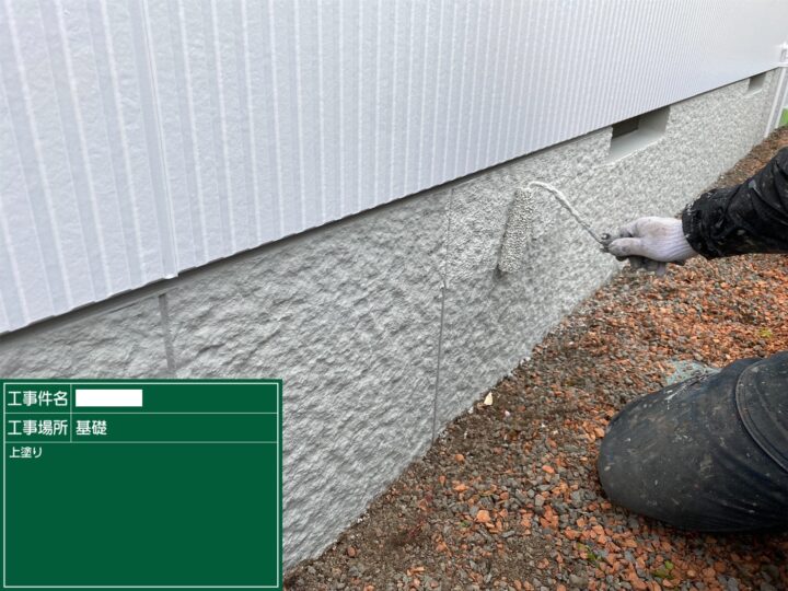 積水ハウスでは、新築時にも基礎塗装を行っているため、今回の塗替え時にも、マスチックローラーを使用し、ゆず肌で仕上げることで美観性も広がるようにしました。