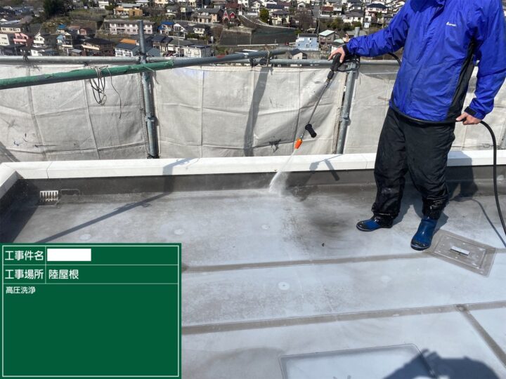 そのため、雨の跡で黒ずんでしまったり、カビやコケなどが付着してしまうため、丁寧に高圧洗浄を行いました。