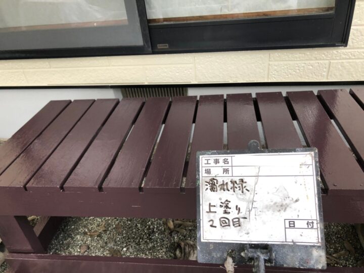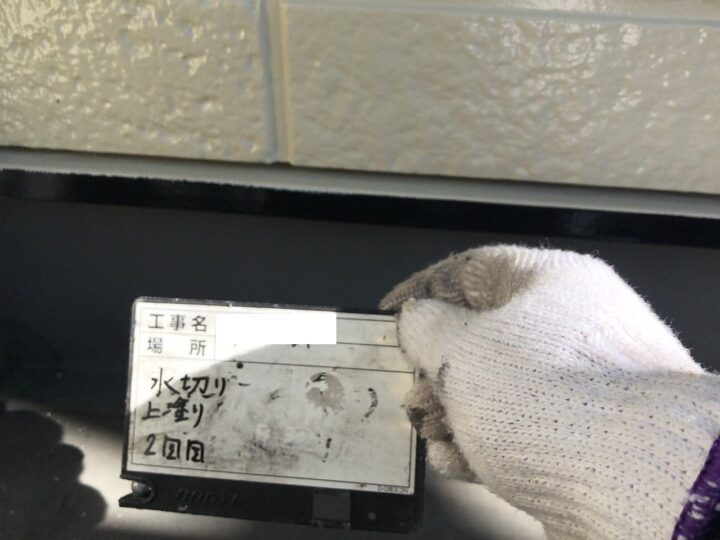 水切りは雨水等の水垢が発生したり、鉄製ですので錆が発生してしまったりするため、下地処理をおこなったあと、上塗りを行いました。