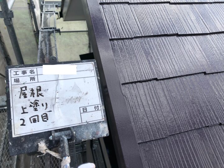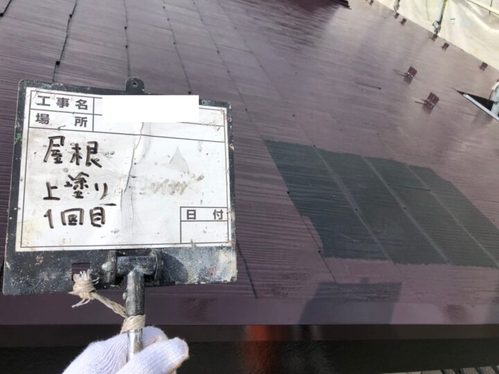 屋根塗装も上塗りが最終工程です。中塗りでの塗り残しを注意して塗装を行いました。屋根の隙間などにも注意して塗装を行いました。