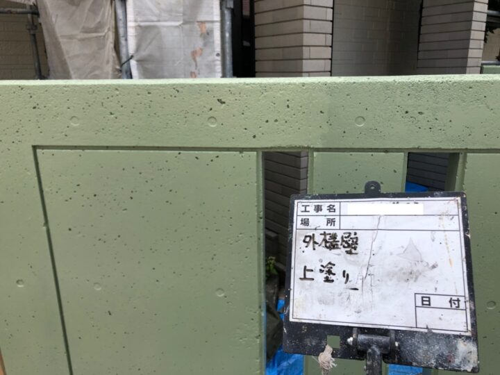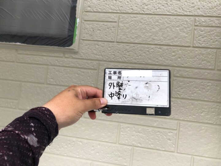 中塗りには下塗りのときにできた凹凸などを平坦にし、上塗りを丁寧に仕上げる効果もあります。中塗りでもムラなく丁寧に塗装を行いました。