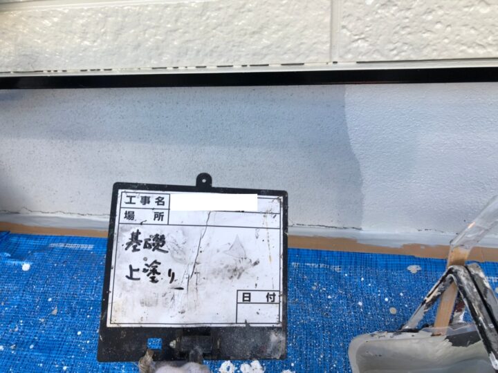 基礎は雨が流れやすく、カビやコケが繁殖しやすい部位ですので、高圧洗浄でしっかりと落としてから塗装を行います。2回に分けて上塗りを行うことで塗膜が厚くなり、カビやコケの繁殖を防ぐことができます。