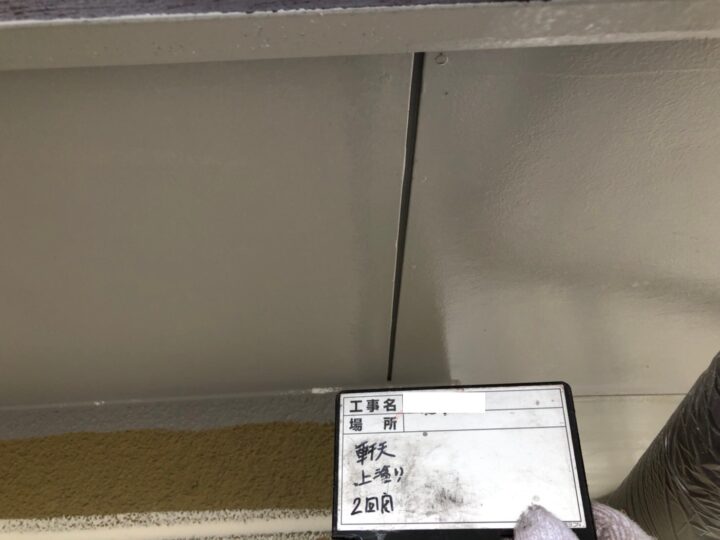 軒天は下地処理のときにひび割れなどをクラック補修し、2回塗りで仕上げました。