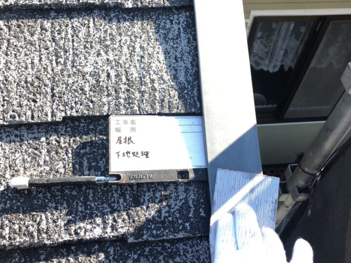 また、劣化がかなり進んでいたため、下塗り塗料を屋根材自体が吸ってしまい、中塗りとの密着が困難であると判断したため、今回は下塗り2回を行い、上塗りとの密着を高める工夫をしました。