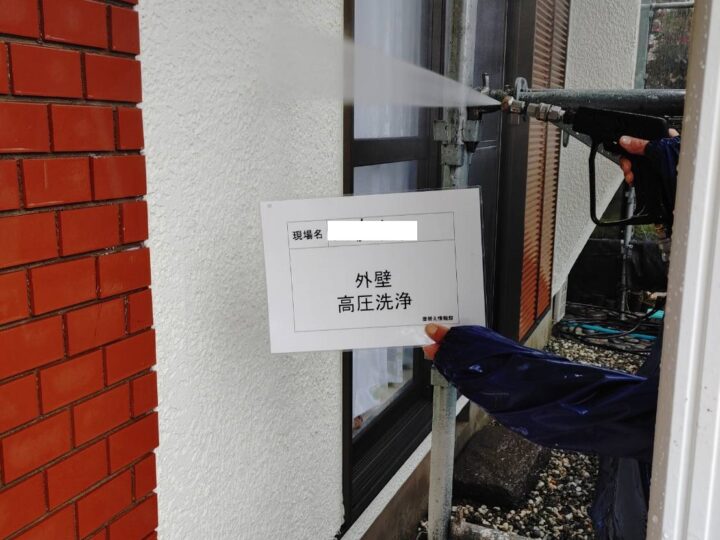 外壁の汚れや傷は、劣化や防水性が失われ始めているサインでもあります。コケやカビも多かったため、バイオ洗浄も利用し、しっかりと高圧洗浄で汚れを落としました。