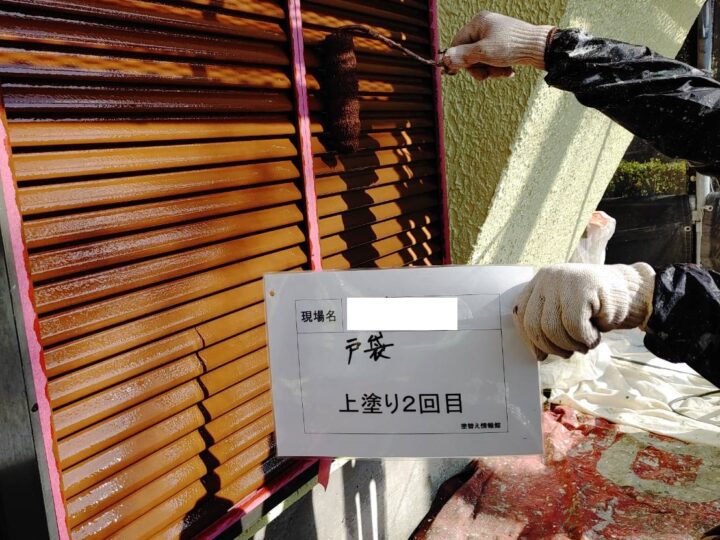 戸袋はスチール製のため、錆止めを塗装後、上塗りを2回に分けて塗り仕上げました。2回に分けて塗ると塗膜が頑丈になるため、錆を長期間防ぐことができます。