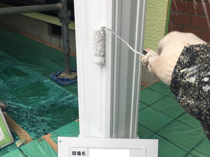 玄関柱は家を支え、美観を保つためには大事な部位です。下地処理を行なったあと、錆止めを塗布し、上塗りを2回に分けて丁寧に仕上げました。