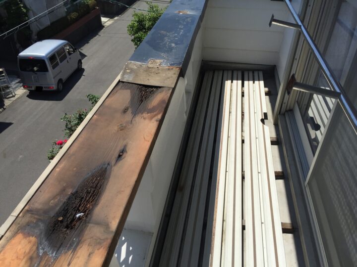 お施主様から雨漏りがあるかもしれないとお問い合わせを頂き、現場調査をするとベランダ手摺の付け根の笠木から雨漏りがありカバー工法で雨漏り補修を行いました。サイディング外壁の反り・浮きなどの部分的な補修工事も同時に行い、お施主様も提案・工事共に満足して頂けました。