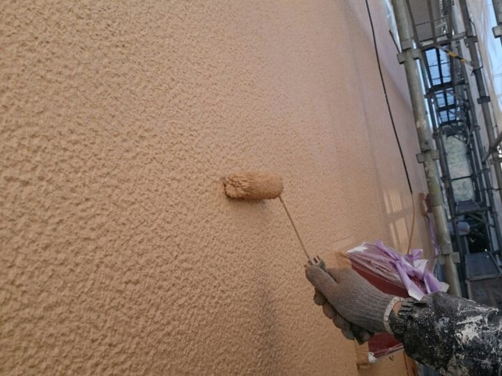 中塗り・上塗りを水性弾性セラミシリコンで2回塗り仕上げます。