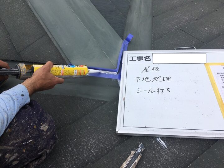 板金、ヒビ部分シーリング処理