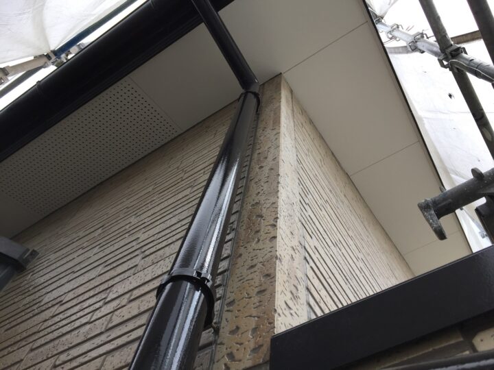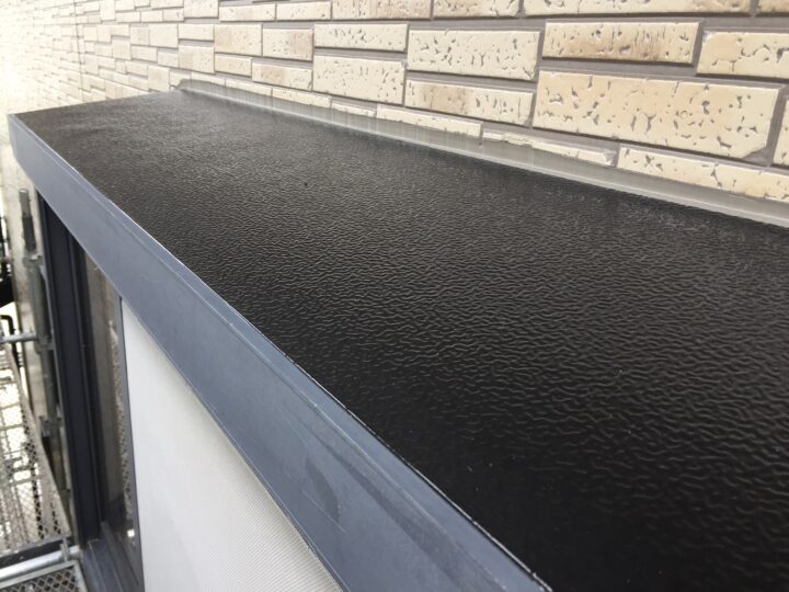 付帯物はSKの一液マイルドシリコンで仕上げ、破風板の目地もオートンイクシードでシーリングの打替えをしています。