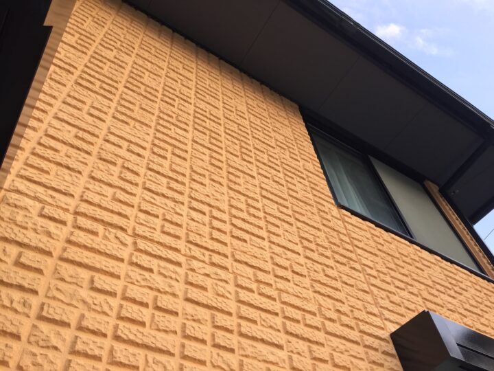 外壁の仕上げにSKセラミファイントップを2回塗り、親水性塗膜で超低汚染な外壁になりました。