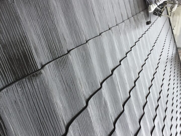 屋根の中塗り上塗りはニッペのラジカルハイブリッド塗料を使用しています。