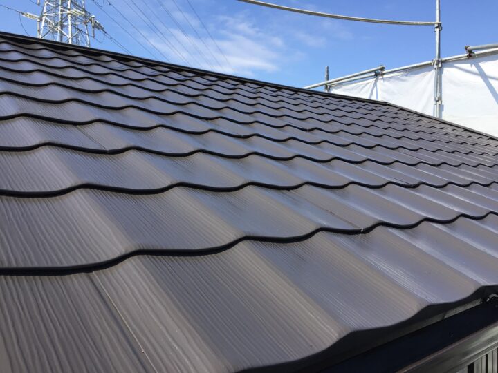 塩ビシート鋼板の屋根はブリード(べたつき)も無く新品の屋根の様な仕上がりです。