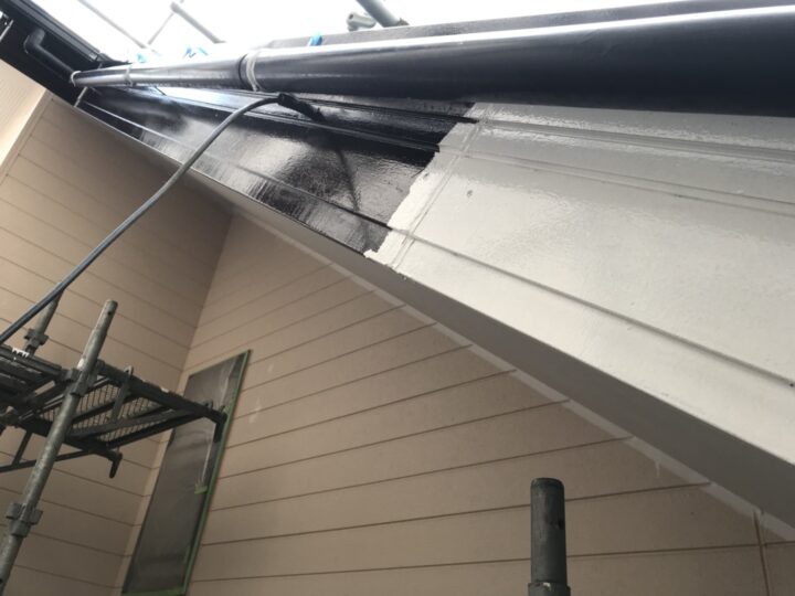 破風板などの細かな箇所も下塗り、中塗り、上塗りとしっかりと3回塗りで仕上げます。