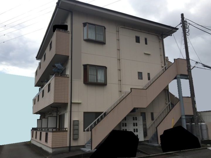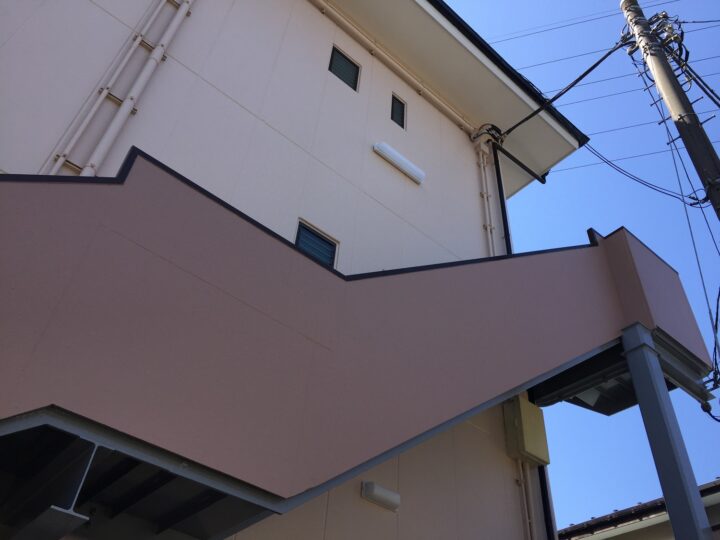 | 工事内容 | 外壁塗装・屋根塗装・雨樋塗装・軒天塗装・破風板塗装・鉄骨階段塗装・パーテーション塗装&交換・避難ハッチ補修&塗装・PSドア塗装・給湯器塗装・外構壁塗装・基礎塗装・アパート文字塗装・アルミ手摺ガラス塗装・シーリング工事 |