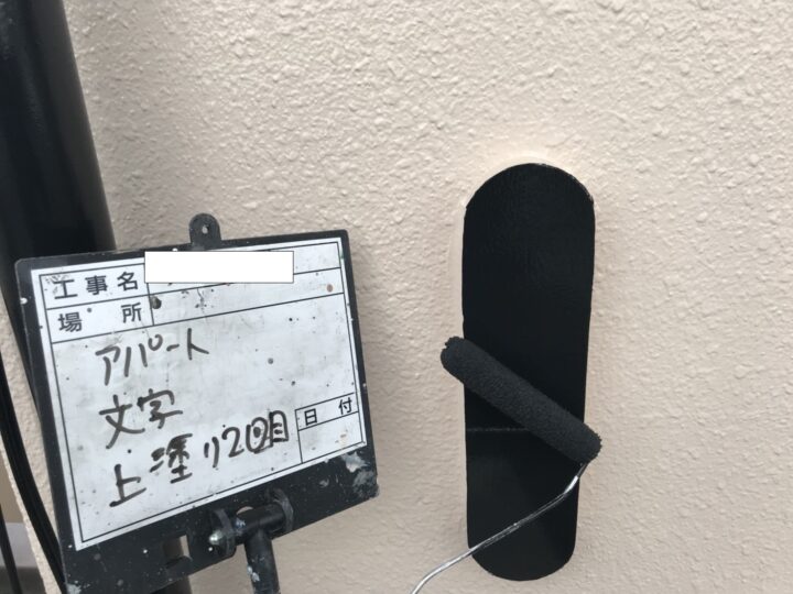 古く見えてしまいがちなアパートの文字もしっかりと綺麗に塗装いたします。