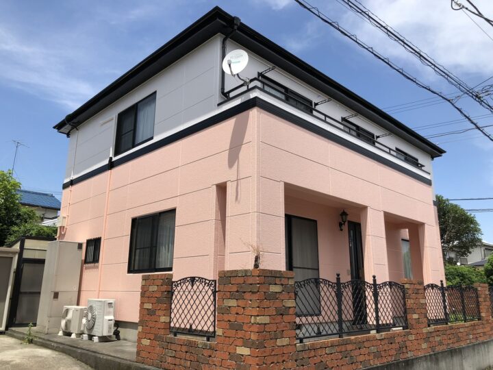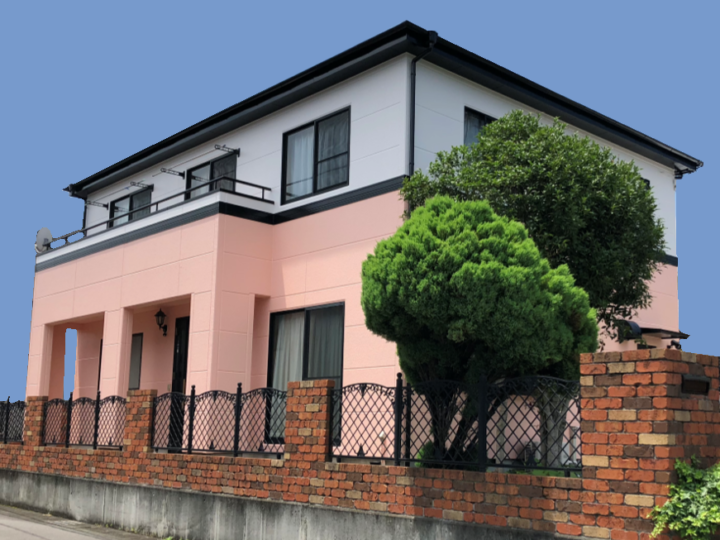外壁は4フッ化フッ素塗料で、白とピンク系の綺麗な色味のオシャレで高耐久な外観になりました。