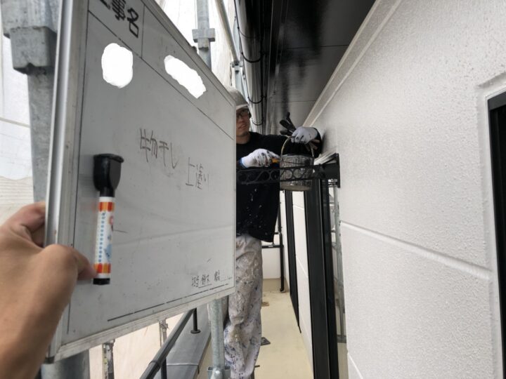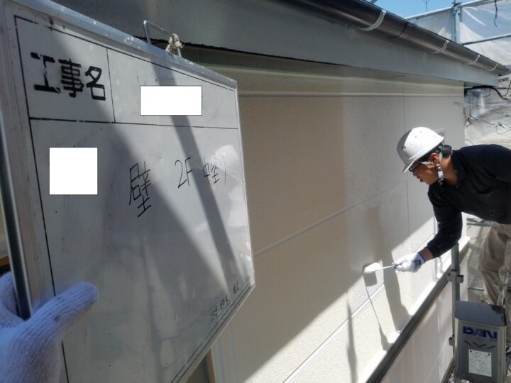 ALC外壁は微弾性フィラーを下塗りに塗布し、中塗り・上塗りと4Fフッ素塗料を2回塗りで仕上げます。