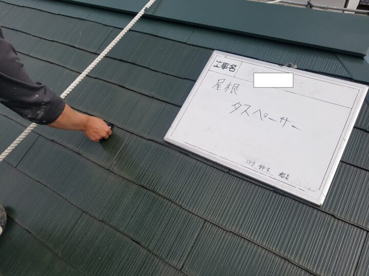 スレート屋根は前回の塗装ではタスペーサーを取付けていなかったため、今回はタスペーサーを取付けて塗装します。
