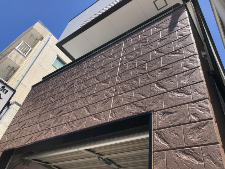 意匠性塗料が塗られていたALCのデザインパネルもニッペパーフェクトセラミックトップG3分艶で仕上げました。