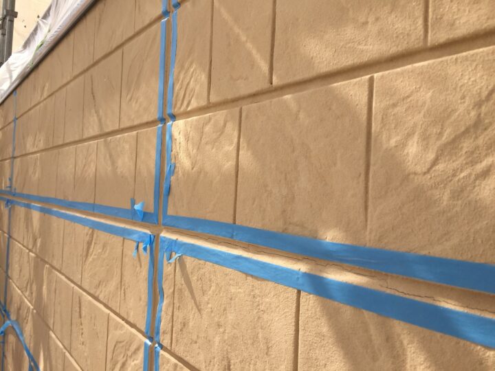 ALC外壁目地は表面の塗膜にヒビの入っている箇所を増し打ちでシーリング施工を行います。
