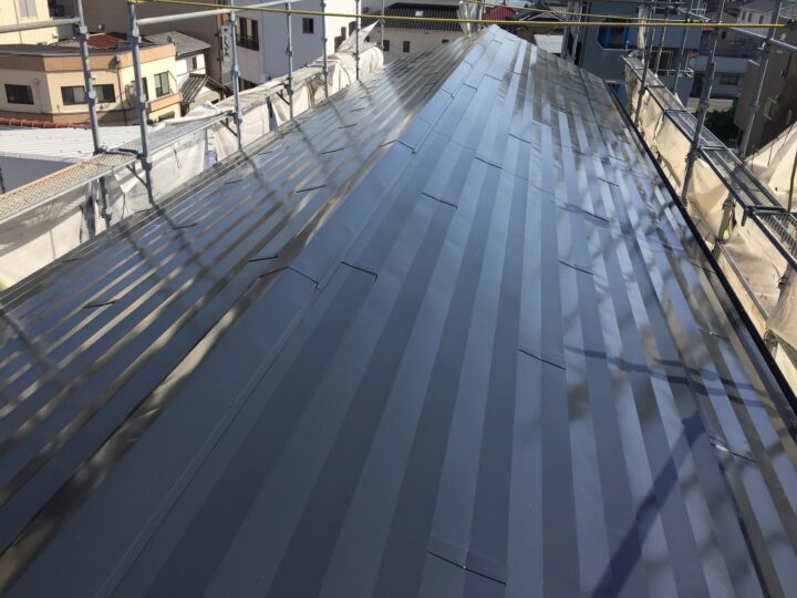無機フッ素塗料で仕上げたガルバリウム鋼板屋根は、艶も出て新品よりも綺麗な屋根になりました。
