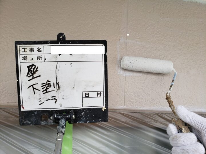 下塗りを行います。この工程で中・上塗りの密着性を高めます。
