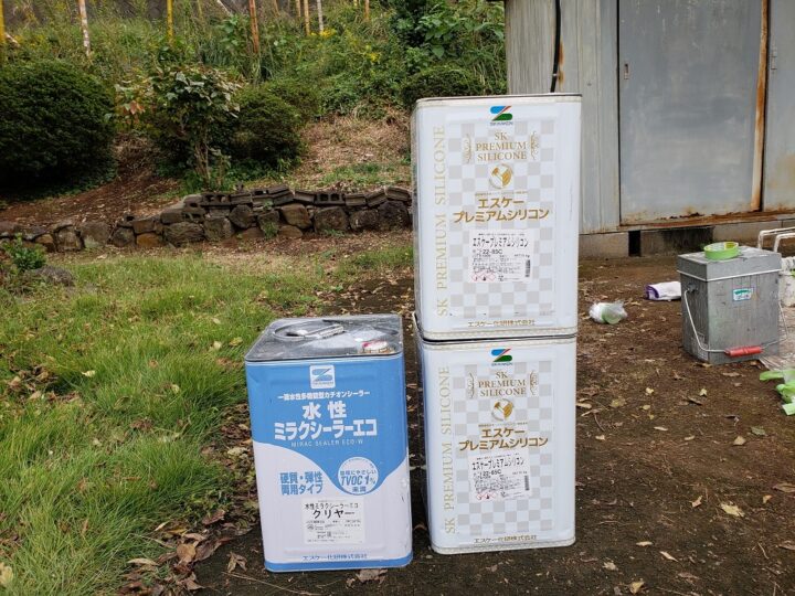 外壁の上塗りにはSKプレミアムシリコンを使用しました。
