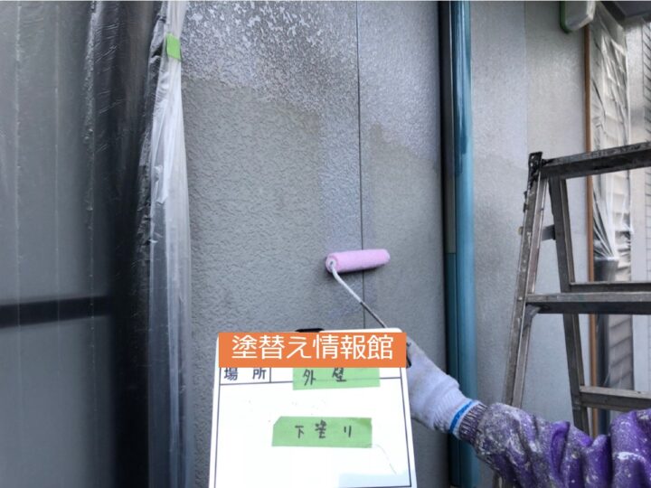 下塗りにはシーラーを塗布します。下塗りの出来が、塗装の耐久性を左右しますので、確実に施工されているか?しっかりと管理が必要です。