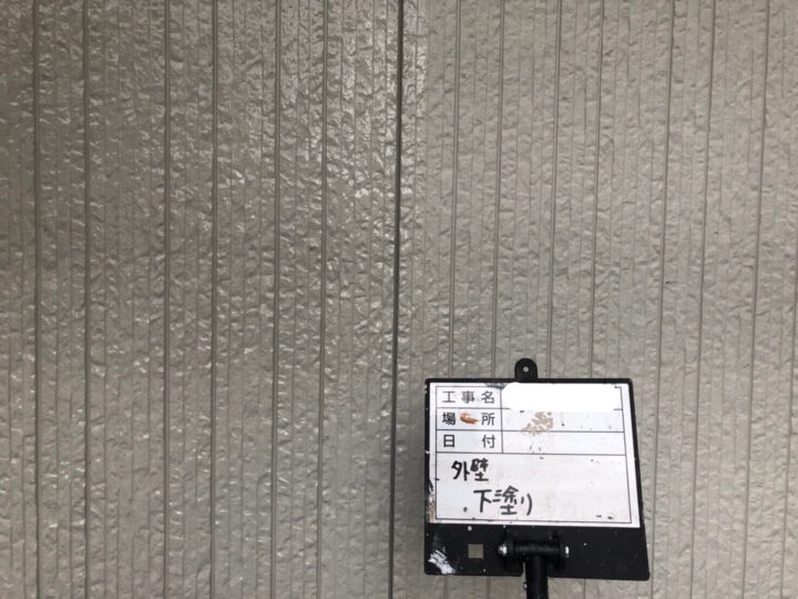 外壁の下塗り。クリア塗装のため下塗り、上塗りの2工程となります。