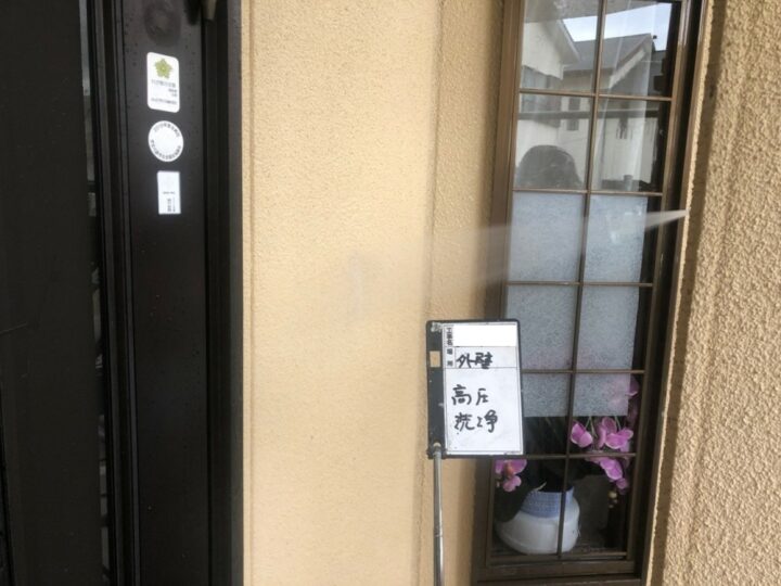 外壁や付帯物に付着した汚れなどを除去するために高圧洗浄を行いました。