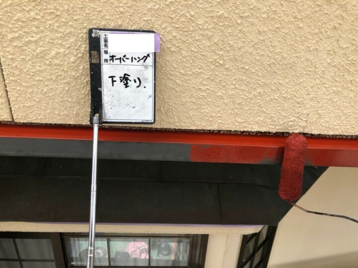 オーバーハング水切りも下地処理を行い、下塗りで錆止めをし、上塗り2回で仕上げました。