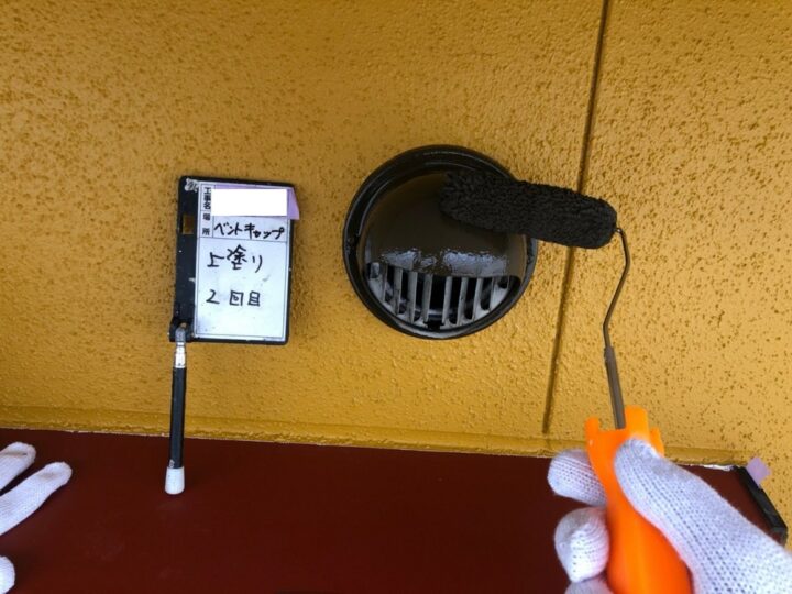 ベントキャップも下地処理、錆止め、上塗り2回で仕上げました。白から茶へイメージチェンジしました。