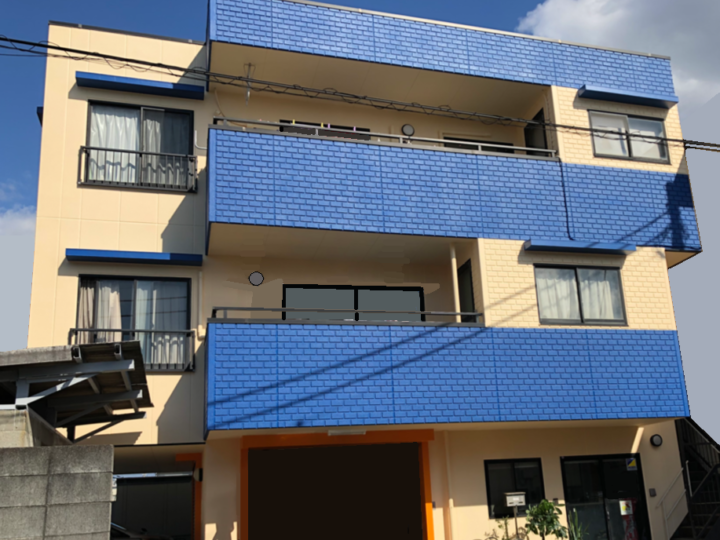 | 工事内容 | 外壁塗装 排水管塗装 シャッター塗装 庇塗装 照明塗装 バルコニー床トップコート塗装工事 陸屋根トップコート塗装 |