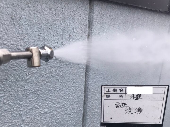 外壁や屋根に付着した汚れやカビ、コケなどを除去するために高圧洗浄を行いました。