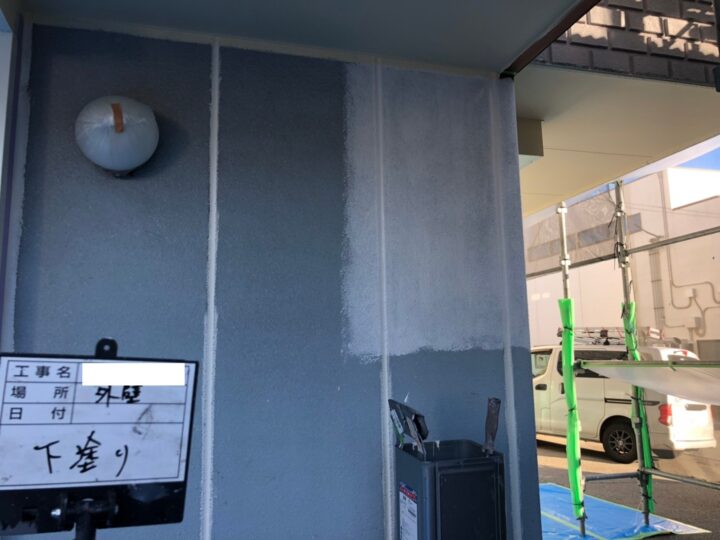 全ての外壁に下塗り塗料を塗った後に、上塗りを2回行い仕上げました。塗膜厚を確保しながら、ムラができないように丁寧に塗装を行いました。