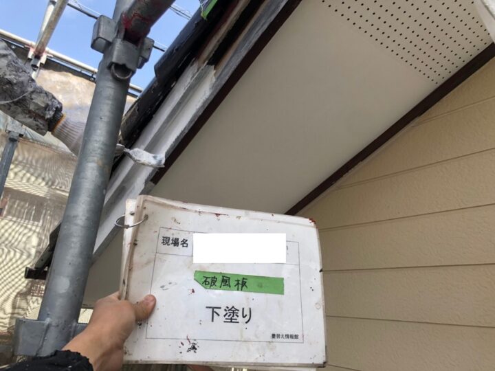 付帯部塗装:破風板下塗り