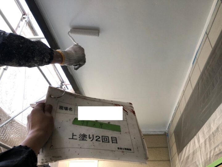 付帯部塗装:軒天井上塗り(2回)